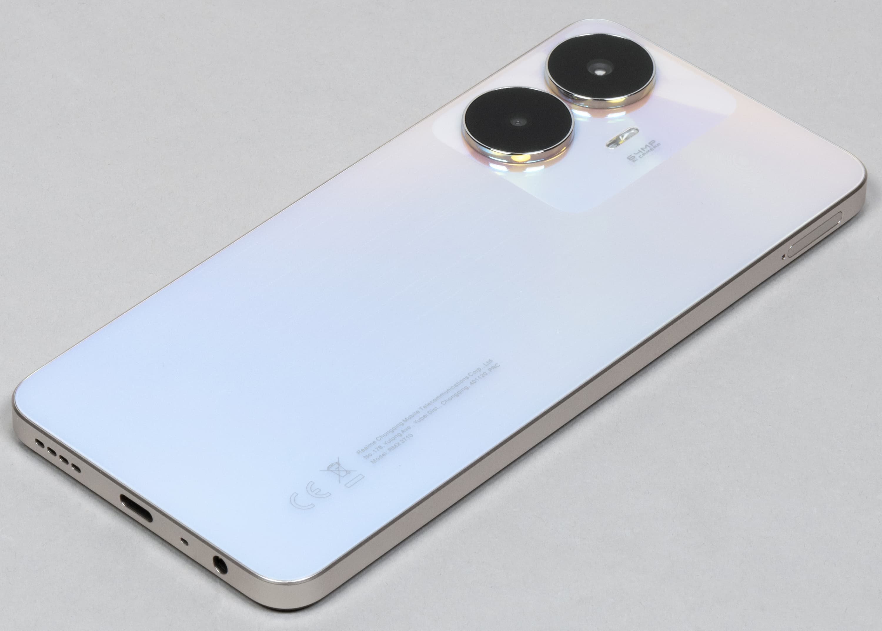 Внешняя часть корпуса полностью пластиковая. Все поверхности матовые, без глянца. Смотрится Realme C55 строго, стильно, даже солидно.
