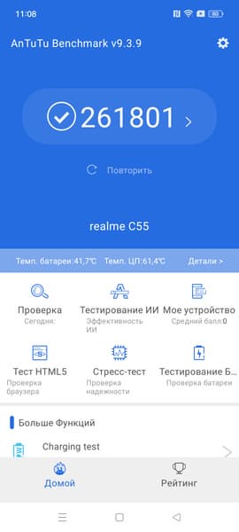 Realme C55 — средний по всем параметрам смартфон, у которого нет ничего особенного, что могло бы его выделить, кроме стильной внешности с актуальным айфоноподобным дизайном. Платформа со своими задачами справляется, и даже в несложные игры поиграть можно. Фотографирует смартфон не совсем провально, но на грани. Звук из единственного динамика грустный, с наушниками (для которых сохранен проводной разъем) ситуация получше. Автономность совсем не напоминает «долгоиграющие» модели C-серии прошлых лет, вроде Realme C25 или C35, она в лучшем случае средняя. Но при розничной стоимости в районе 16-17 тысяч рублей на момент подготовки обзора (за модель с объемом памяти 8/256 ГБ) вряд ли можно ожидать сильно большего.