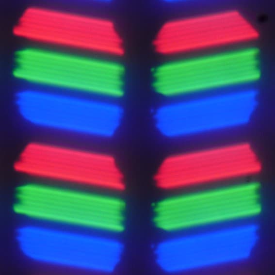 В данном смартфоне используется матрица типа IPS. Микрофотографии демонстрируют типичную для IPS структуру субпикселей: