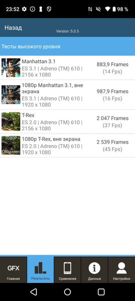 | GFXBenchmark Manhattan ES 3.1 (Onscreen, fps) | 14 | 13 | 23 | 49 | 24 |