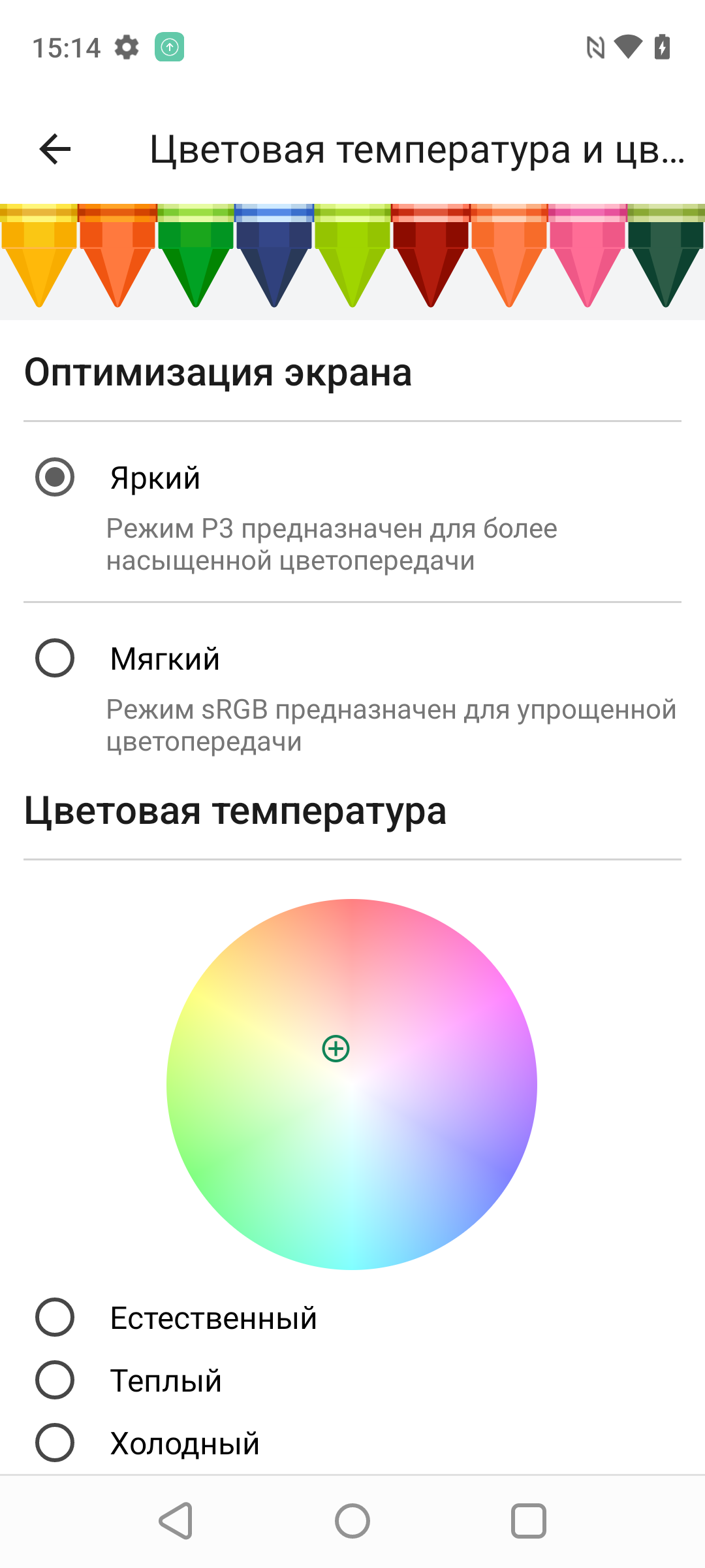 Профиль Яркий отличается увеличенной насыщенностью цветов: