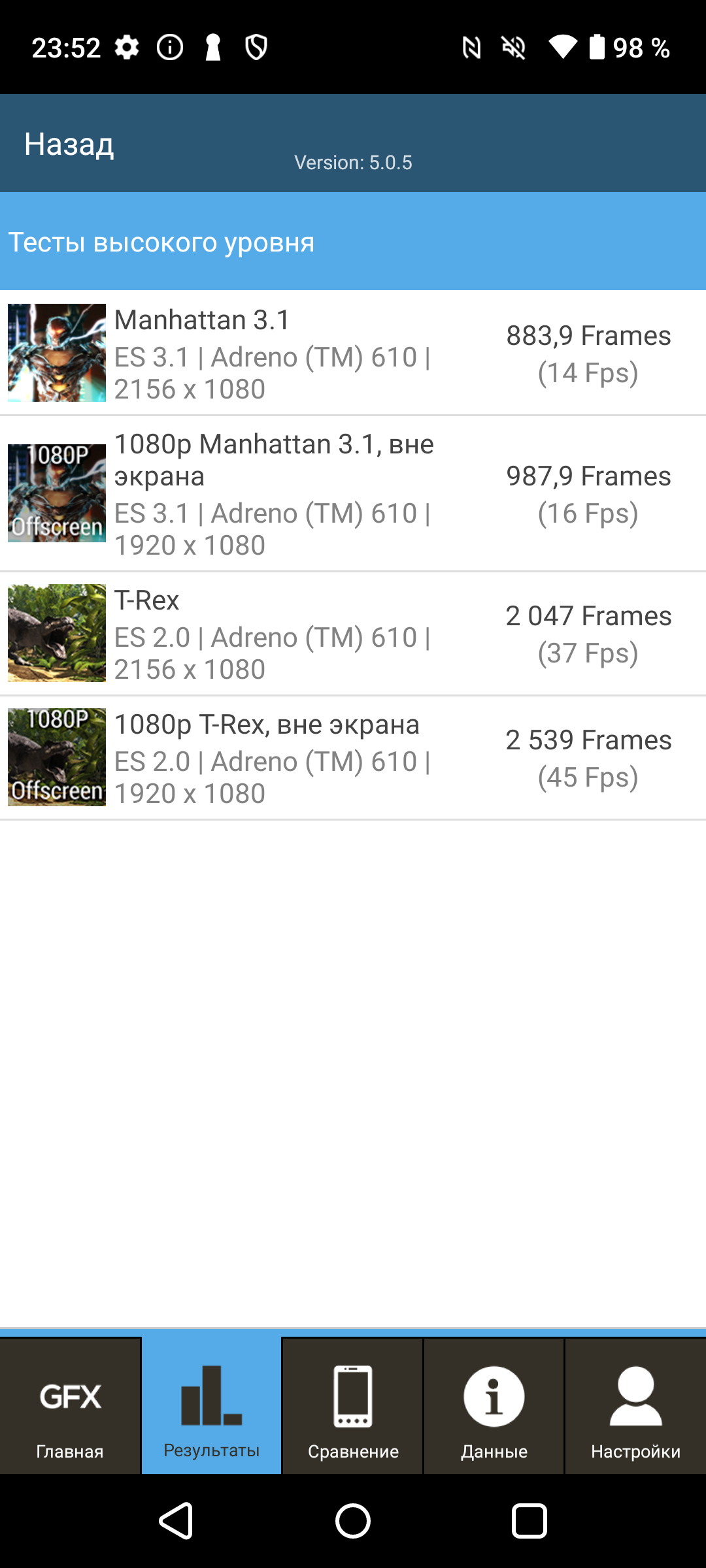Все результаты, полученные нами при тестировании смартфона в самых свежих версиях популярных бенчмарков, мы для удобства свели в таблицы. В таблицу обычно добавляется несколько других аппаратов из различных сегментов, также протестированных на аналогичных последних версиях бенчмарков (это делается лишь для наглядной оценки полученных сухих цифр). К сожалению, в рамках одного сравнения нельзя представить результаты из разных версий бенчмарков, поэтому «за кадром» остаются многие достойные и актуальные модели — по причине того, что они в свое время проходили «полосу препятствий» на предыдущих версиях тестовых программ.