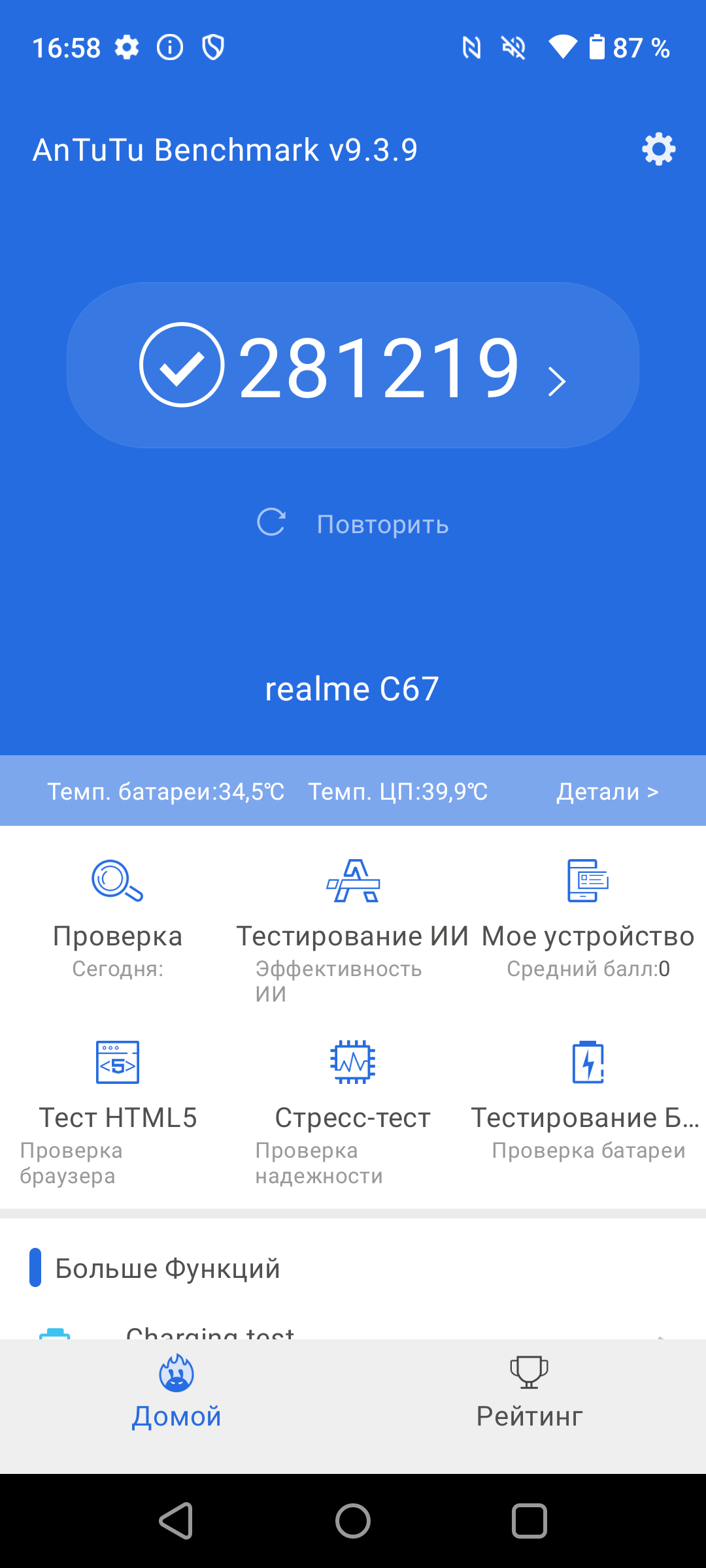 Тестирование в комплексных тестах AnTuTu и GeekBench: