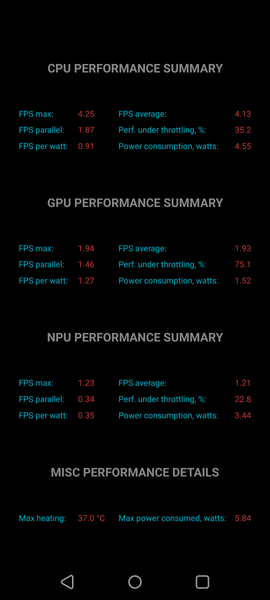 Тест на снижение производительности при нагреве мы проводим с помощью программы Burnout Benchmark, которая позволяет нагружать CPU, GPU и NPU: