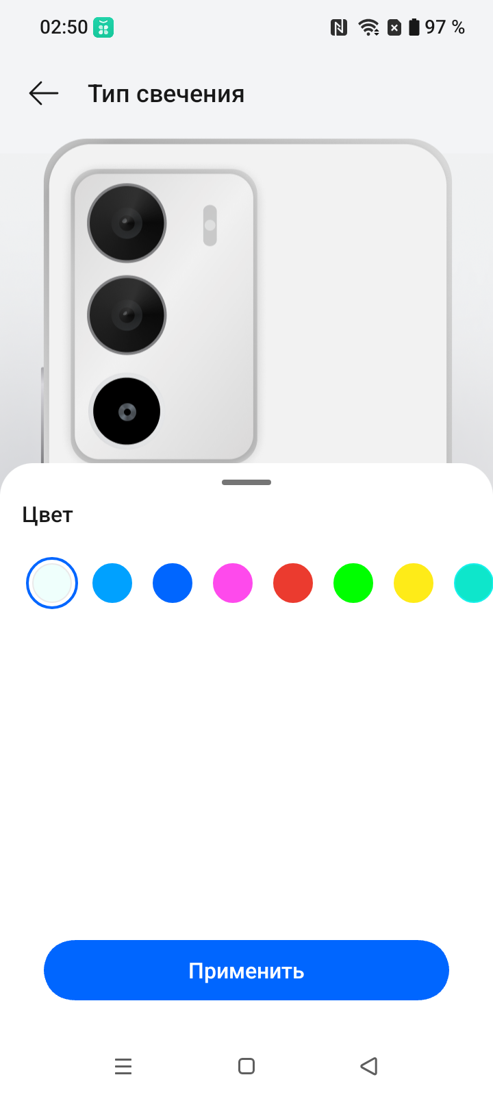 Глазки камер и вспышек объединяет прозрачная пластина, немного возвышающаяся над задней стенкой. Ее подложка выкрашена в общий цвет корпуса, стекла обведены металлизированными ободками, всё расставлено симметрично и аккуратно. Нижнее колечко представляет собой круговой световой RGB-индикатор, который может светить разными цветами, оповещая о входящих звонках, о пропущенных событиях, о процессе зарядки и т. д. В настройках есть целый раздел, посвященный этому элементу.