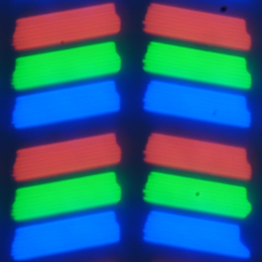 В данном смартфоне используется матрица типа IPS. Микрофотографии демонстрируют типичную для IPS структуру субпикселей: