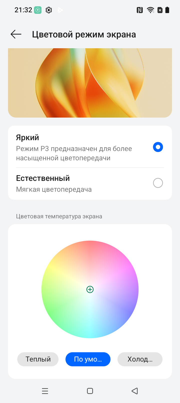 Фотография выше получена при активном профиле Естественный в настройках экрана, всего их два: