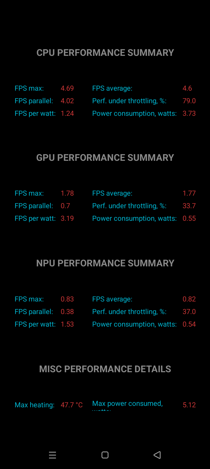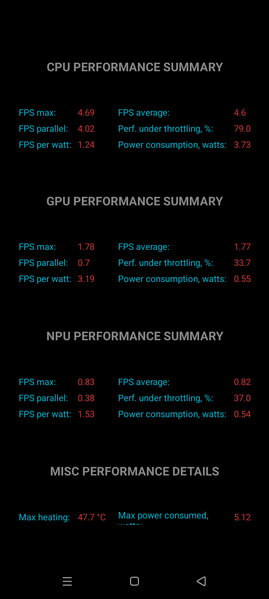 Тест на снижение производительности при нагреве мы проводим с помощью программы Burnout Benchmark, которая позволяет нагружать CPU, GPU и NPU: