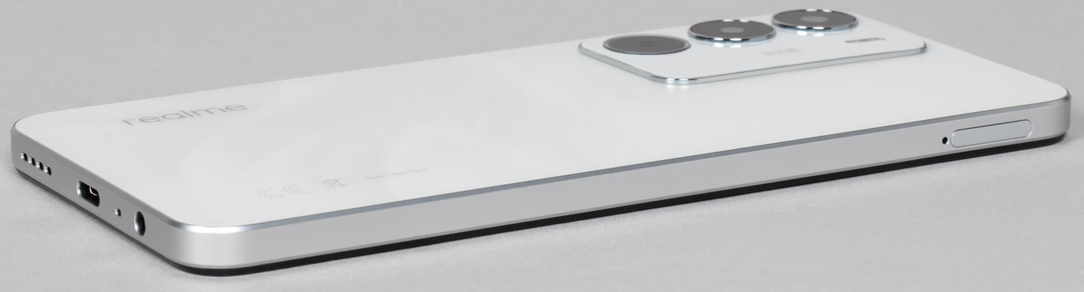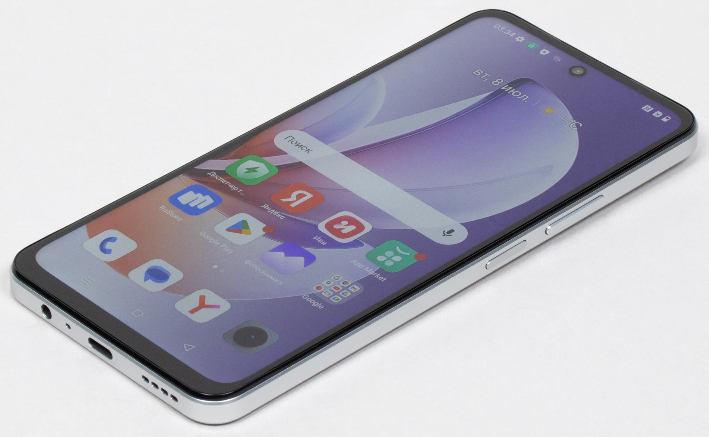 Верхний торец совершенно пустой. На нижнем торце собраны динамик, микрофон и разъем USB Type-C, а также 3,5-миллиметровый аудиовыход. Стереодинамиков у смартфона нет, единственный динамик в нижнем торце выдает простенький звук средней громкости.