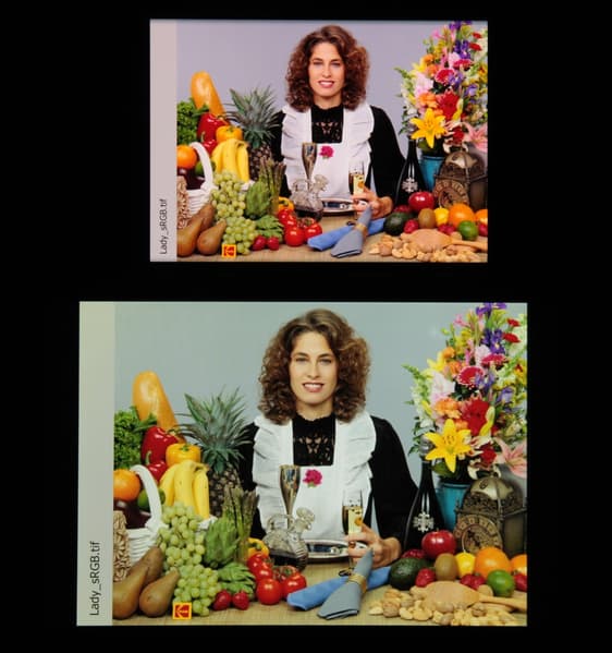При сильном изменении условий освещенности подстройка цветового баланса выражена слабо, поэтому, с нашей точки зрения, эта функция не работает как нужно. Отметим, что сейчас сложившимся стандартом является калибровка устройств отображения к точке белого в 6500 К, но в принципе, коррекция под цветовую температуру внешнего света может принести пользу, если хочется добиться лучшего соответствия изображения на экране с тем, что видно на бумаге (или на любом носителе, на котором цвета формируются за счет отражения падающего света) в текущих условиях.