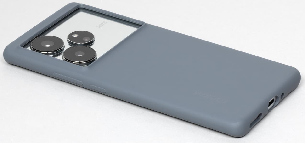 Нивелируется это с помощью фирменного толстого непрозрачного чехла из комплекта. Он защищает своим ободком объективы от соприкосновения с поверхностью, и смартфон, облаченный в чехол, устойчиво лежит на твердых поверхностях.