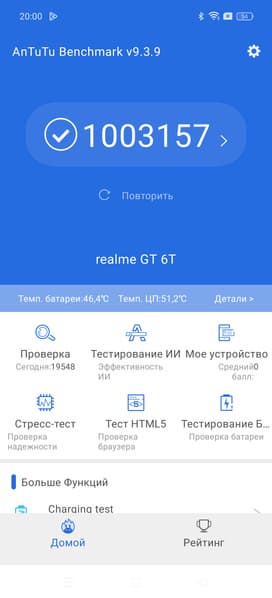 | AnTuTu (v9.x) (больше — лучше) | 1003157 | 509328 | 489575 | 546957 | 669583 |