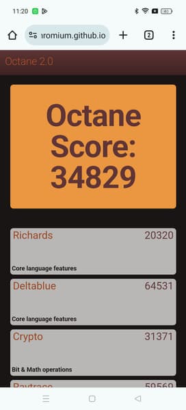 | Google Octane 2 (больше — лучше) | 34829 | 7118 | 33442 | 24923 | 39276 |