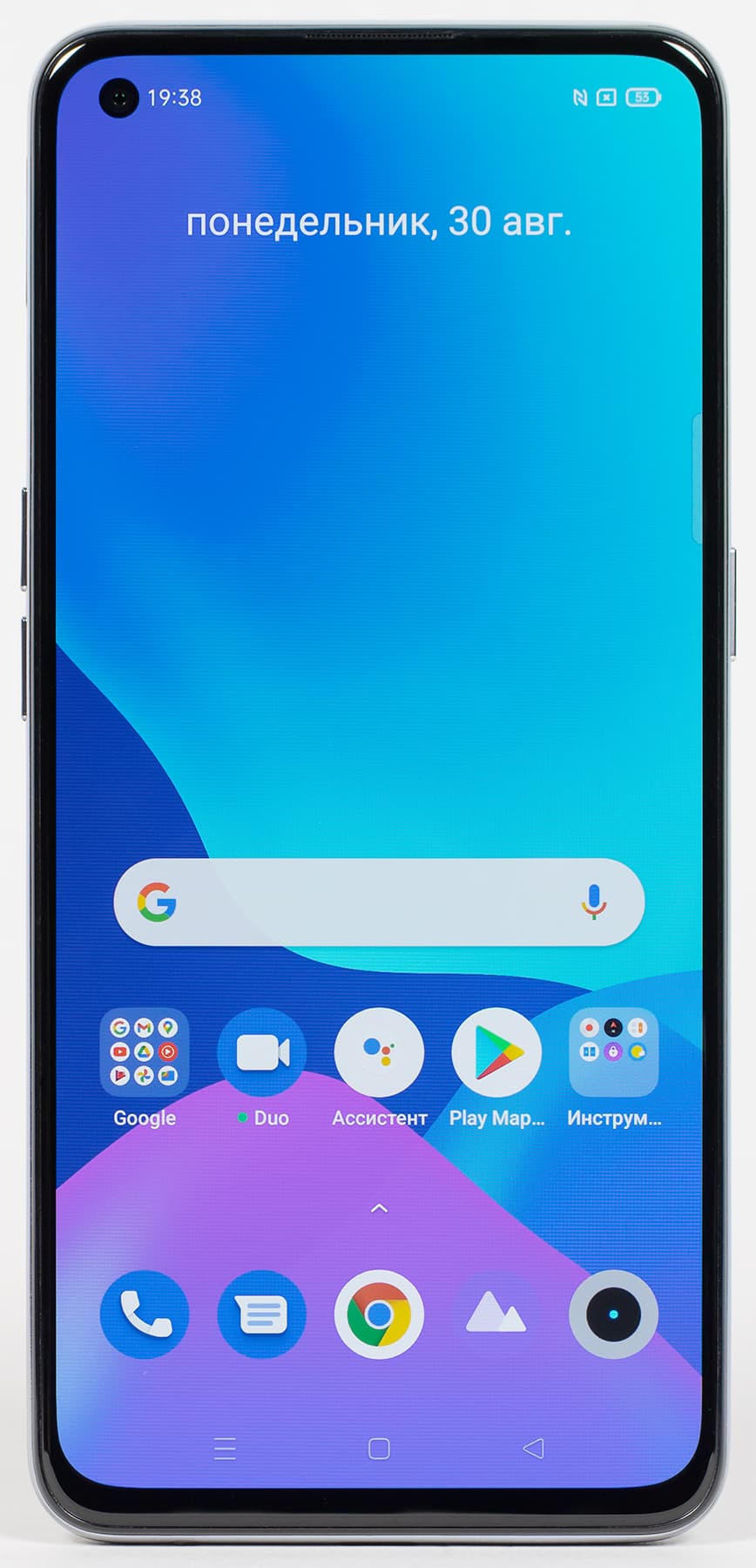 Realme GT Master Edition не только смотрится изящно, он также комфортен для руки. Аппарат очень тонкий и очень легкий, особенно по теперешним меркам, когда уже трудно найти мощный мобильный аппарат массой менее 200 граммов. Никаких загнутых скользких и бликующих краев стекла, никаких заостренных боковых граней, — все сделано с умом.