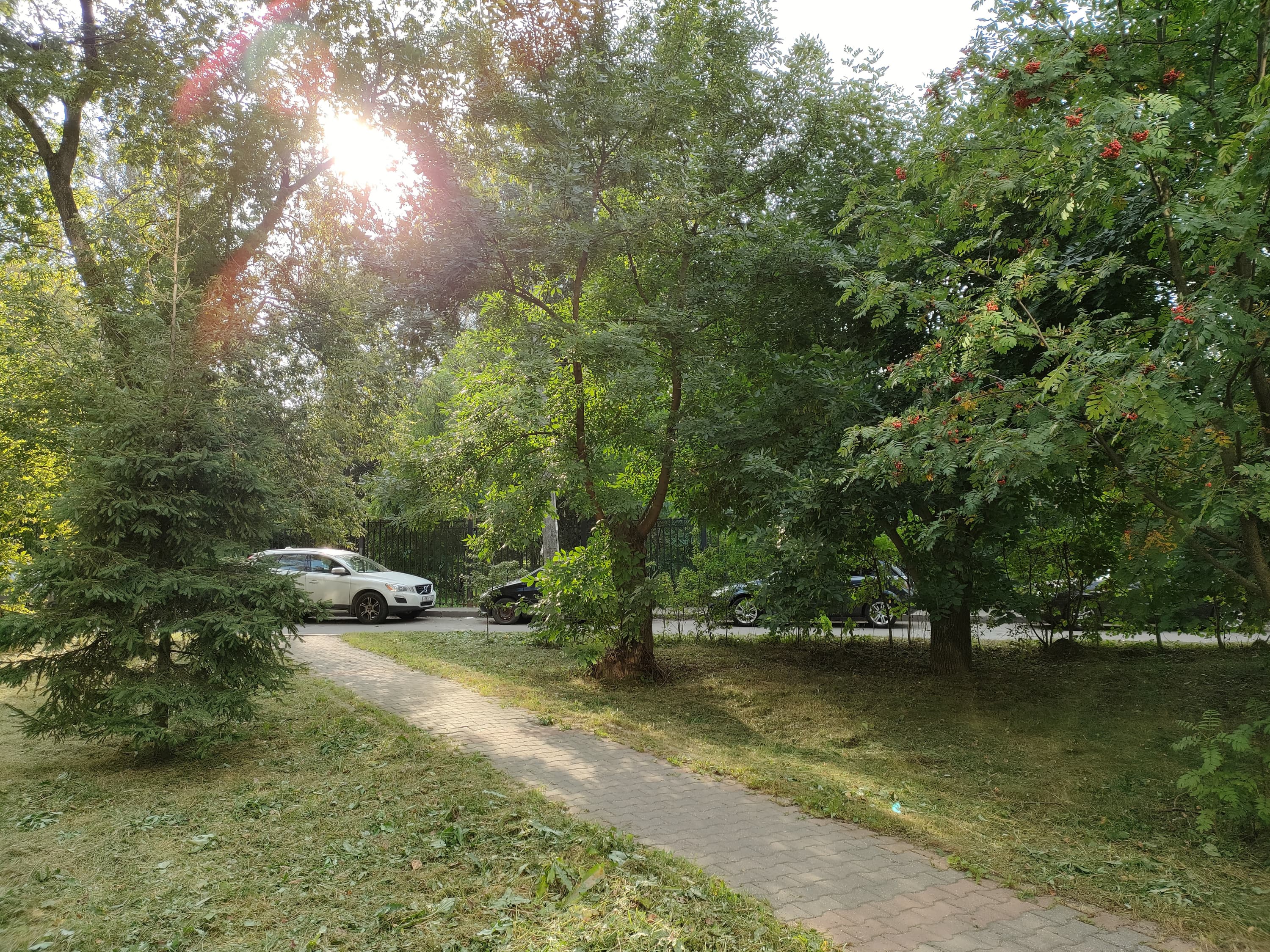 Основной 64-мегапиксельный модуль по умолчанию снимает в 16 Мп с функцией объединения пикселей, но можно переключиться на съемку в полном разрешении 64 Мп. Фазовый PDAF-автофокус во всех случаях ведет себя адекватно. Оптического стабилизатора нет. Смена разрешения осуществляется максимально быстро — прямо на экране видоискателя.