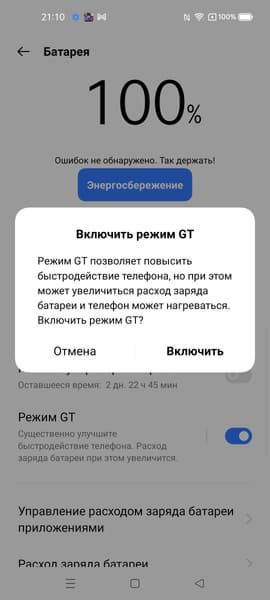 Realme GT Neo 2 получил встроенную батарею большой емкости. Автономность аппарат демонстрирует очень высокую, гораздо лучшую, чем у виденных нами флагманов на истинно флагманской «пламенной» Snapdragon 888.