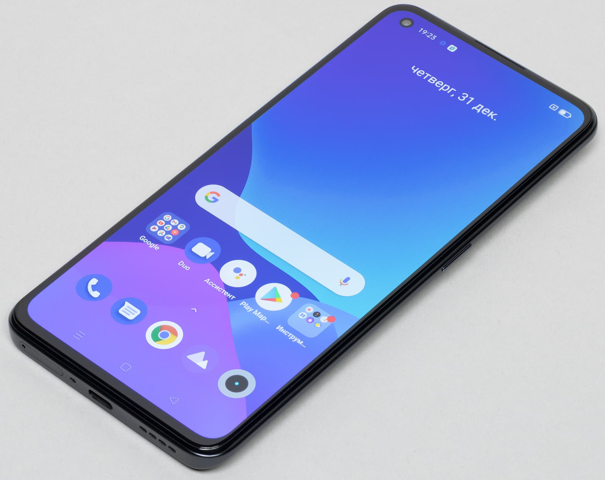 Экран у Realme GT Neo 2 чуть-чуть темнее (яркость по фотографиям 107 против 112 у Nexus 7) и не имеет выраженного оттенка. Двоение отраженных объектов в экране Realme GT Neo 2 очень слабое, это свидетельствует о том, что между слоями экрана нет воздушного промежутка. За счет меньшего числа границ (типа стекло/воздух) с сильно различающимися коэффициентами преломления такие экраны лучше смотрятся в условиях интенсивной внешней засветки, но вот их ремонт в случае потрескавшегося внешнего стекла обходится гораздо дороже, так как менять приходится экран целиком. На внешней поверхности экрана есть специальное олеофобное (жироотталкивающее) покрытие (по эффективности гораздо лучше, чем у Nexus 7), поэтому следы от пальцев удаляются легче, а появляются с меньшей скоростью, чем в случае обычного стекла.