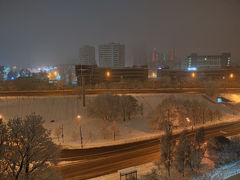 В режиме ночной съемки доступны все 4 варианта масштабирования: 0,6×, 1×, 2× и 5×. Однако что-то более-менее приятное для глаза можно получить ночью лишь на основную камеру без зума.