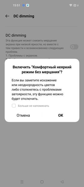 Те, кому кажется, что такое мерцание вызывает дискомфорт, могут попробовать включить функцию с названием DC Dimming. Также в настройках экрана можно включить режим с повышенной до 120 Гц частотой обновления: