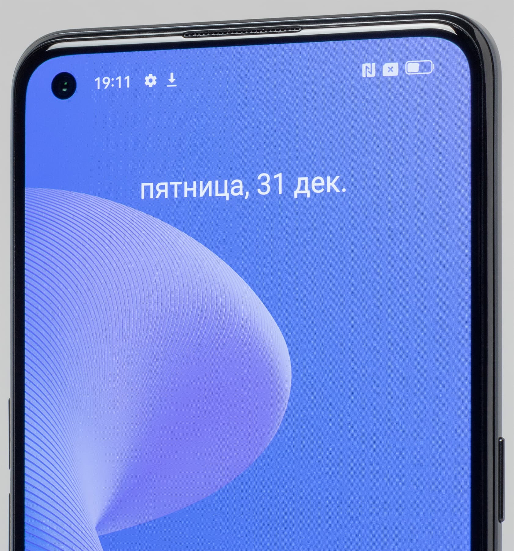 На торце внизу установлены и все остальные элементы: динамик, микрофон и разъем USB Type-C. К сожалению, 3,5-миллиметровый аудиовыход для наушников опять отсутствует. В Realme, видимо, насмотрелись на действия Apple и Samsung и тоже стали их копировать. Но для пользователей в этом ничего хорошего, конечно, нет. Проводную гарнитуру подключить проще и быстрее всего, она не требует ежедневной зарядки, и отбирать эту опцию некрасиво, невзирая ни на какие слова о переходниках.