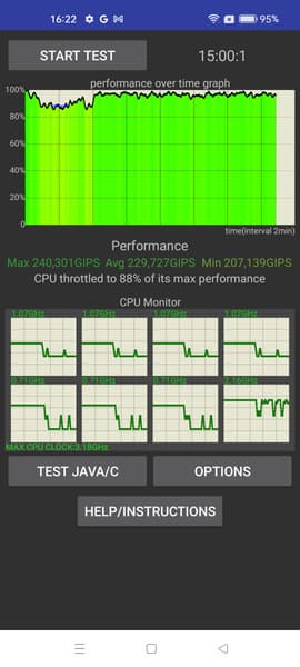 Тестирование традиционно проводилось на обычном уровне энергопотребления без использования функций энергосбережения, хотя таковые в аппарате имеются. Условия тестирования: выставлен минимальный комфортный уровень яркости (примерно 100 кд/м²). Тесты: беспрерывное чтение в программе Moon+ Reader (со стандартной, светлой темой); беспрерывный просмотр видео в HD-качестве (720р) через домашнюю сеть Wi-Fi; игра Injustice 2 с автонастройками графики.