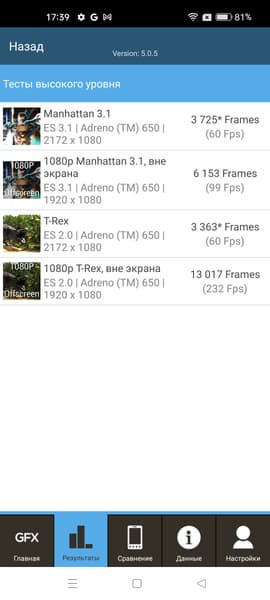 Все результаты, полученные нами при тестировании смартфона в самых свежих версиях популярных бенчмарков, мы для удобства свели в таблицы. В таблицу обычно добавляется несколько других аппаратов из различных сегментов, также протестированных на аналогичных последних версиях бенчмарков (это делается лишь для наглядной оценки полученных сухих цифр). К сожалению, в рамках одного сравнения нельзя представить результаты из разных версий бенчмарков, поэтому «за кадром» остаются многие достойные и актуальные модели — по причине того, что они в свое время проходили «полосу препятствий» на предыдущих версиях тестовых программ.