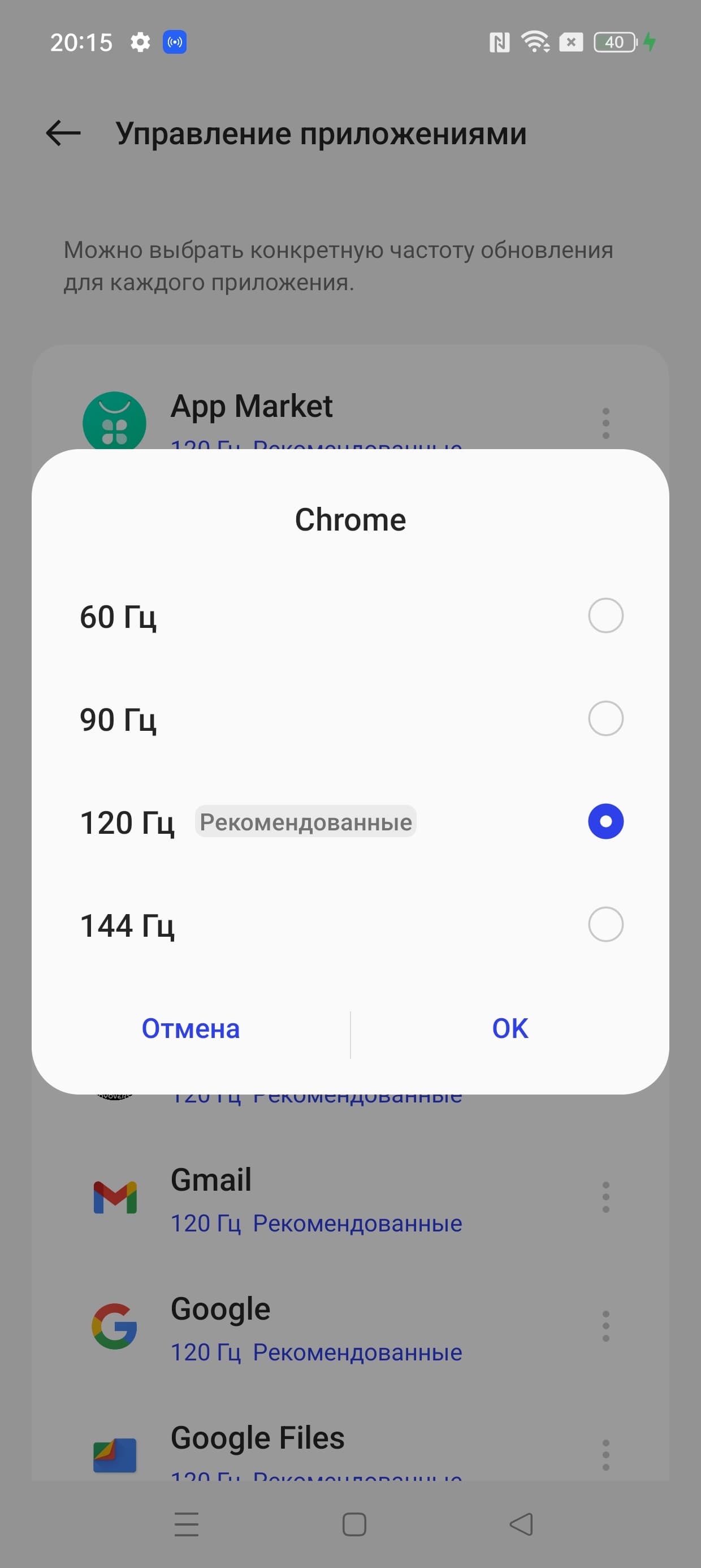 Точнее, частота может повышаться максимум до 90, 120 или 144 Гц в зависимости от того, что выбрано в настройках для каждого приложения.