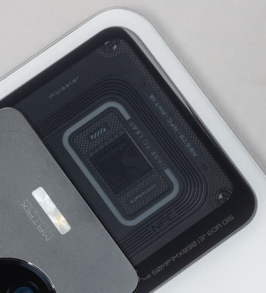 Блок с камерами практически не выпирает за пределы дутого корпуса, потому аппарат не покачивается при работе с экраном на твердых поверхностях, лежит устойчиво. Рядом с камерами на задней стенке под прозрачной вставкой из стекла врезана светодиодная панель в виде незамкнутой С-образной дуги, названная “Pulse Interface”. Эта RGB-подсветка играет роль светового индикатора оповещений о разнообразных событиях — звонках, сообщениях, статусе зарядки. Подсветка имеет 25 вариантов цветов, которые ритмично пульсируют с разной скоростью, это можно самостоятельно настраивать по своему вкусу.