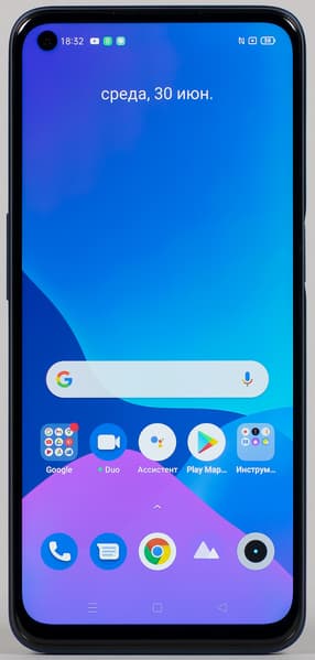 Экран у Realme Narzo 30 5G заметно темнее (яркость по фотографиям 102 против 110 у Nexus 7). Двоение отраженных объектов в экране Realme Narzo 30 5G очень слабое, это свидетельствует о том, что между слоями экрана (конкретнее между внешним стеклом и поверхностью ЖК-матрицы) нет воздушного промежутка (экран типа OGS — One Glass Solution). За счет меньшего числа границ (типа стекло/воздух) с сильно различающимися коэффициентами преломления такие экраны лучше смотрятся в условиях интенсивной внешней засветки, но вот их ремонт в случае потрескавшегося внешнего стекла обходится гораздо дороже, так как менять приходится экран целиком. На внешней поверхности экрана есть специальное олеофобное (жироотталкивающее) покрытие, которое по эффективности примерно как у видавшего виды Nexus 7, что по современным меркам весьма средне. Но все равно следы от пальцев удаляются существенно легче, а появляются с меньшей скоростью, чем в случае обычного стекла.