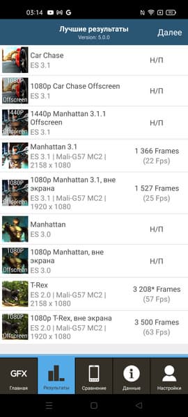 | 3DMark Sling Shot Ex OpenGL ES 3.1 (больше — лучше) | 2339 | 1474 | 1428 | 1155 | 2708 |