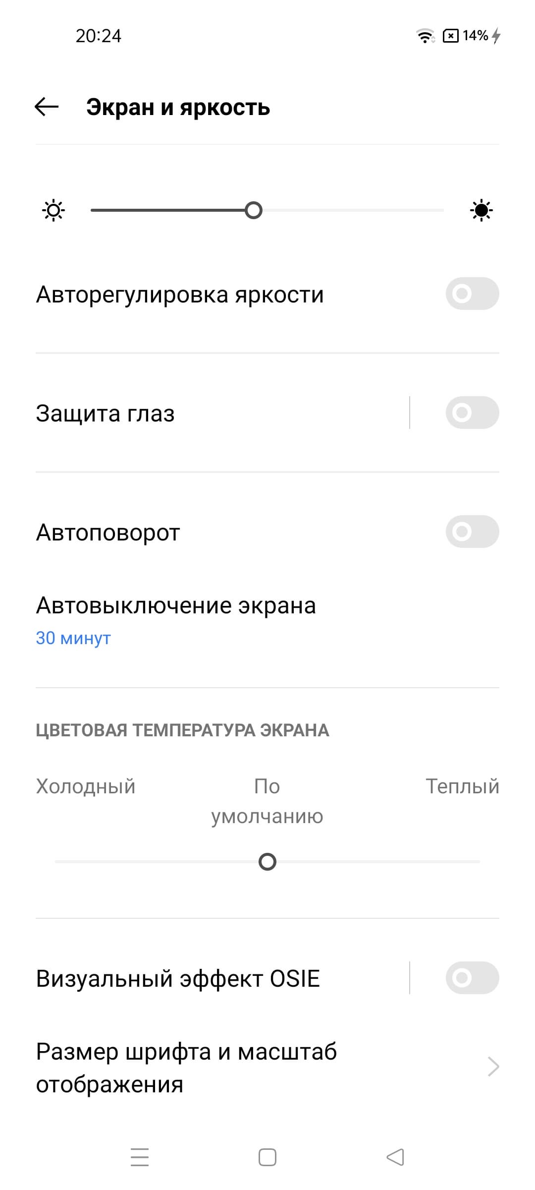 В настройках экрана можно включить режим с повышенной до 90 Гц частотой обновления. В режиме 90 Гц плавность прокрутки списков меню заметно повышается.