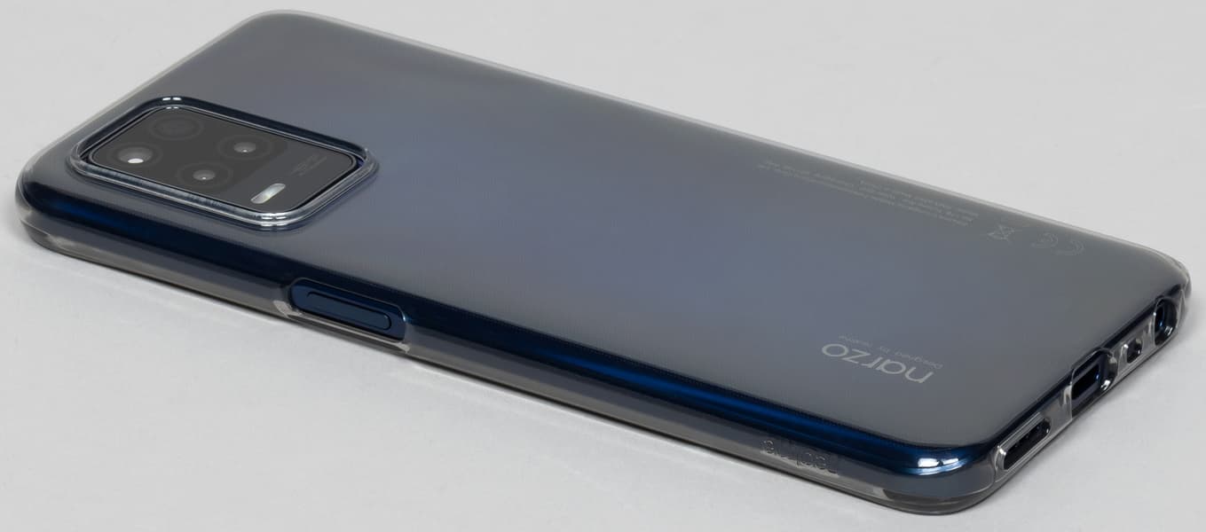 В комплекте с Realme Narzo 30 5G идет сетевое зарядное устройство мощностью 18 Вт, а также гибкий прозрачный защитный чехол.