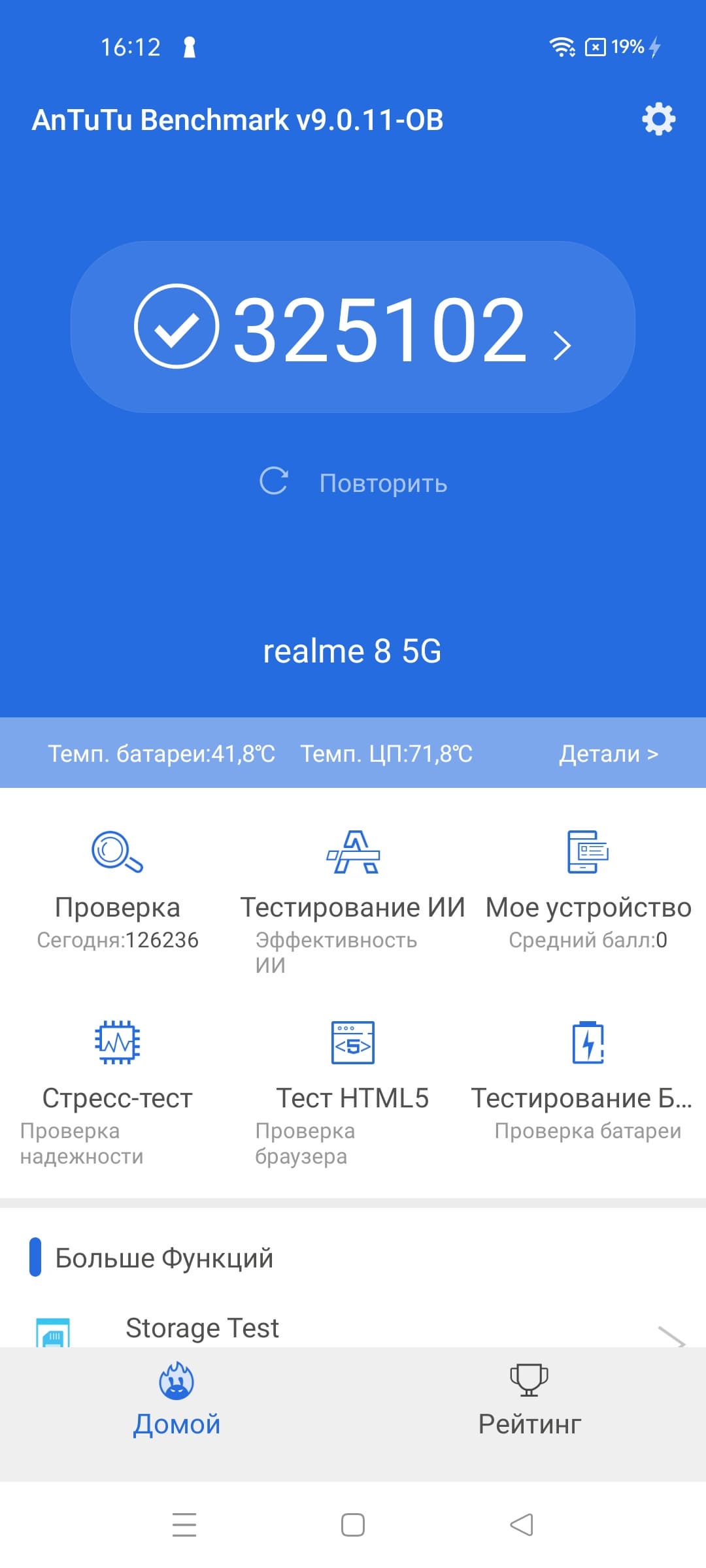 | AnTuTu (v9.x) (больше — лучше) | 325102 | 283847 | 221274 | 219907 | 300841 |