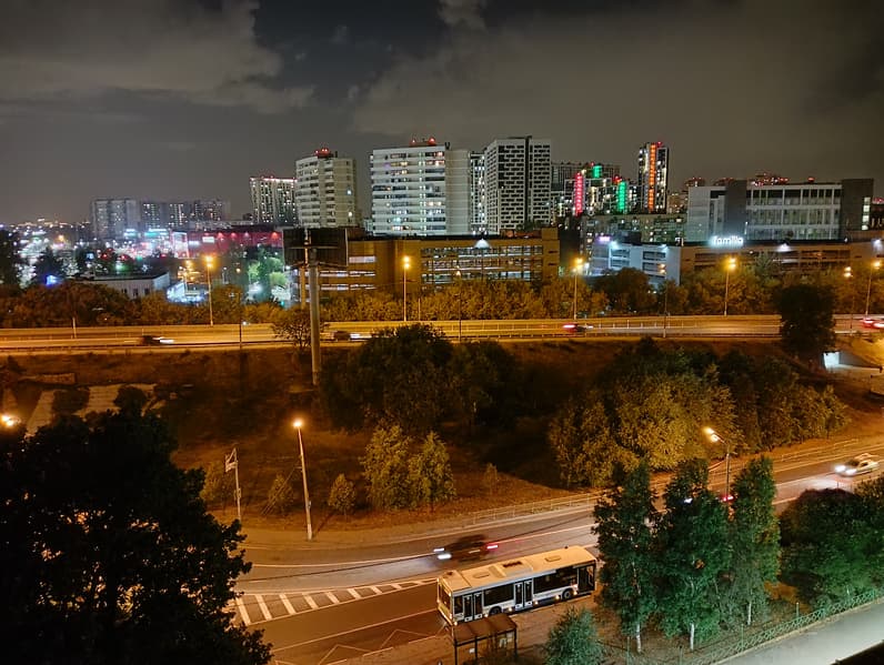 Ночной режим умеренно сильно поднимает экспозицию, но не высветляет картинку совсем уж неадекватно. На фото заметна работа шарпинга, шумы подавлены плоховато, но в целом ночной режим справляется вполне адекватно, делает картинку зрелищной.