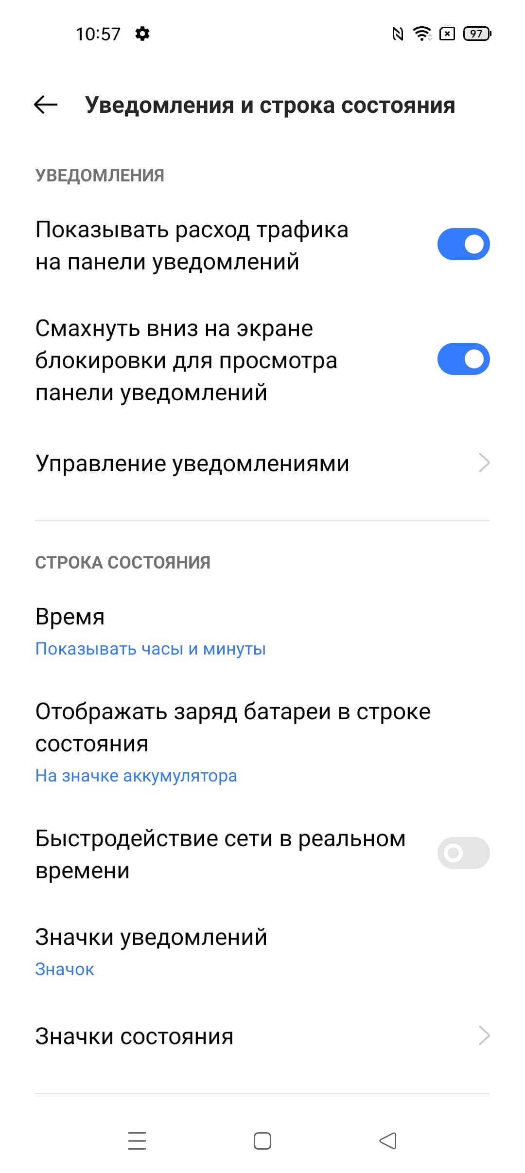 В качестве программной платформы используется ОС Android 11 с собственной оболочкой Realme UI 2.0. Это лаконичный и удобный интерфейс, где все логично расставлено и оформлено. Этим он отличается от большинства типичных китайских оболочек, в которых множество кнопок, функций и сочетаний разнообразных действий, которые европейцу запоминать лень. Здесь же даже нет даже разделения верхней шторки на две части — она одна, полноценная. В интерфейсе нет никакой навязчивой рекламы, всплывающей или встроенной, нет и ненужной прослойки в виде «псевдоустановщика», как у Xiaomi. На месте официальный магазин приложений Google Play и сервисы Google.