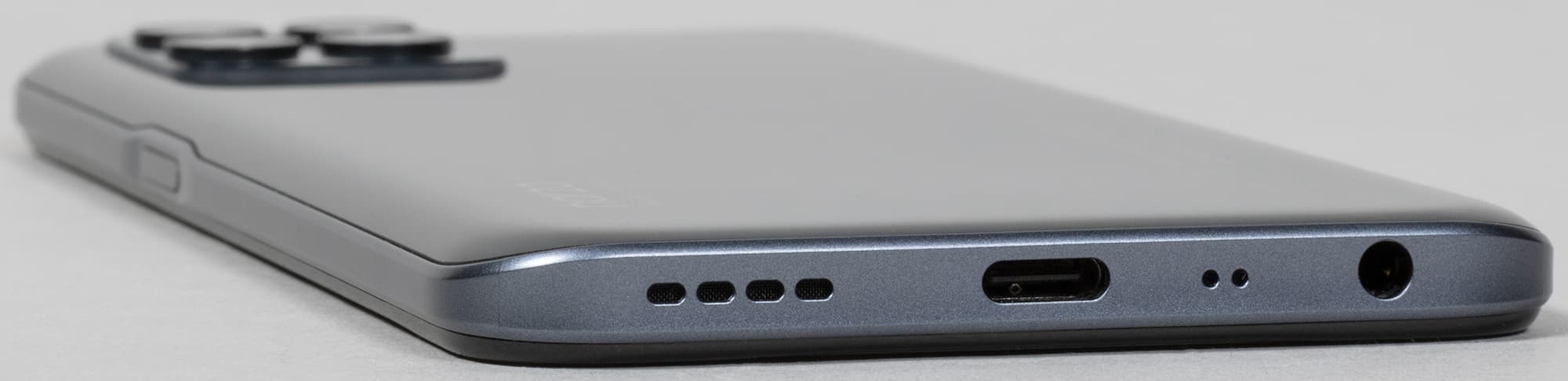 Верхний торец пустует. На нижнем размещены 3,5-миллиметровый аудиовыход для наушников, динамик, микрофон и разъем USB Type-C.