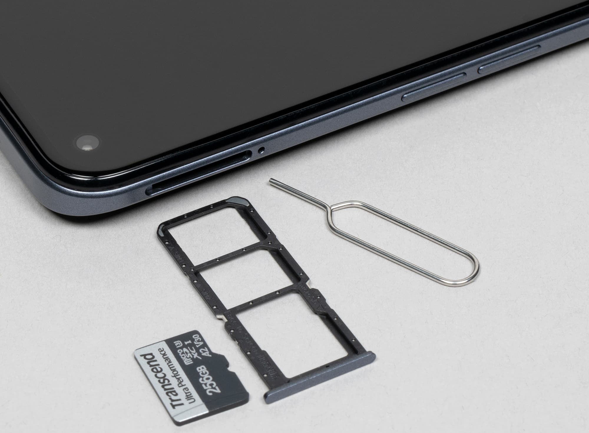 В тройной разъем на боку можно установить одновременно две карты Nano-SIM и карту памяти. Поддерживается горячая замена карточек.