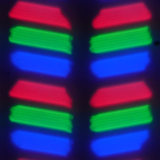 В данном смартфоне используется матрица типа IPS. Микрофотографии демонстрируют типичную для IPS структуру субпикселей: