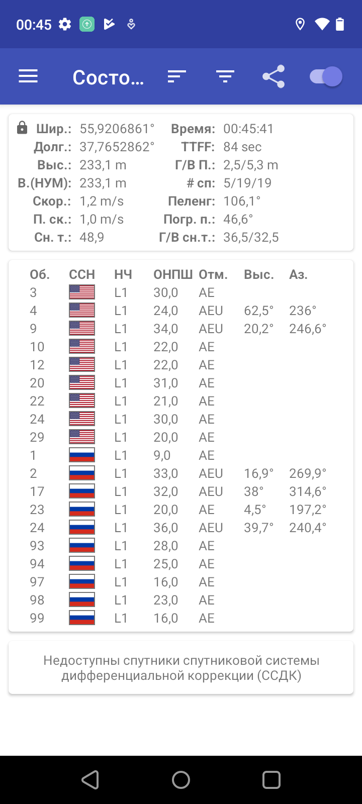 Одноканальный модуль спутниковой навигации работает с GPS, а также Глонасс, Galileo и BDS. Первые спутники при холодном старте обнаруживаются не молниеносно, но точность позиционирования не вызывает претензий.
