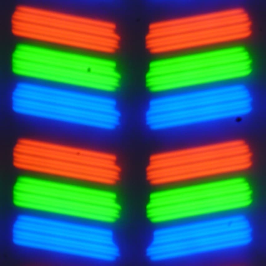 В данном смартфоне используется матрица типа IPS. Микрофотографии демонстрируют типичную для IPS структуру субпикселей: