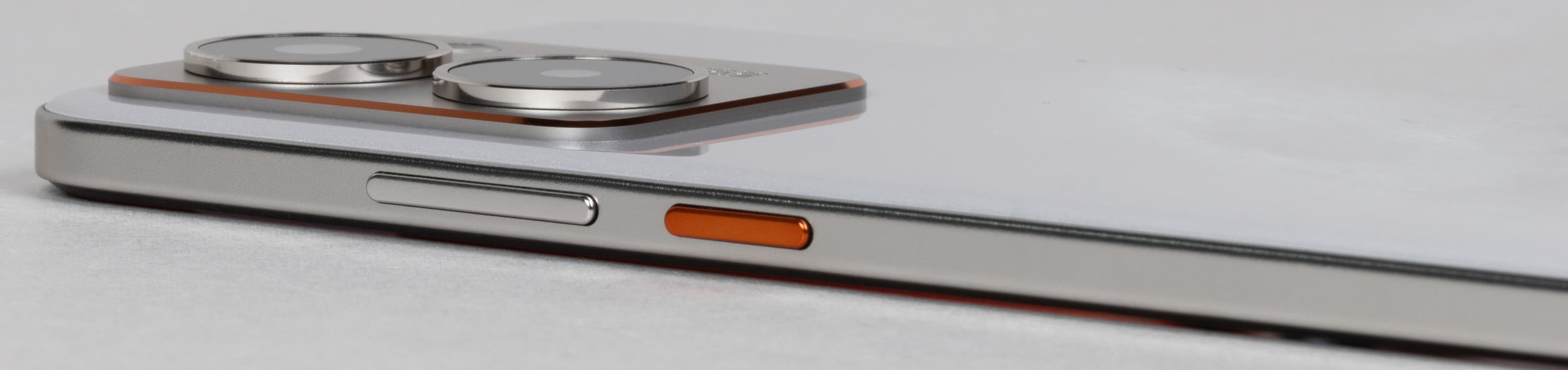 Аппаратные кнопки расположены на одном боку, удобно, прямо под пальцами. Клавиши широкие, крупные, выступают на достаточную высоту. К тому же, клавиша питания и блокировки выкрашена в оранжевый, что придет аппарату еще немного «стильности» — особенно если учитывать замысел разработчиков и считать телефон игровым.