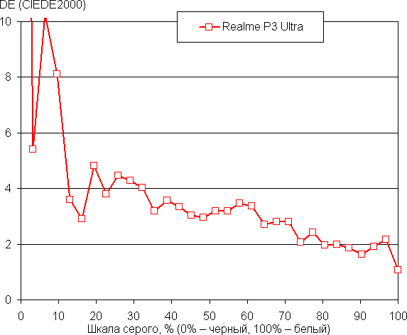 (Самые темные области шкалы серого в большинстве случаев можно не учитывать, так как там баланс цветов не имеет большого значения, да и погрешность измерений цветовых характеристик на низкой яркости высокая.)