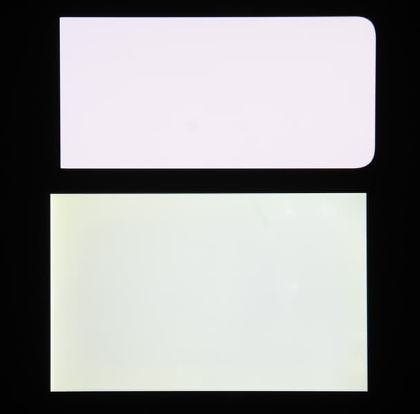 Экран характеризуется великолепными углами обзора. Яркость под углом у обоих экранов заметно уменьшается (если сравнивать с Nexus 7), но в случае смартфона падение яркости выражено гораздо меньше. В итоге, даже если установить формально одинаковую яркость, то экран этого смартфона визуально выглядит гораздо более ярким (в сравнении с ЖК-экранами), так как на экран мобильного устройства часто приходится смотреть как минимум под небольшим углом. Правда, у смартфона белый цвет при отклонении на большие углы приобретает легкий сине-зеленый оттенок, но черный цвет остается просто черным под любыми углами. Он настолько черный, что параметр контрастности в данном случае неприменим. Для сравнения приведем фотографии, на которых на экраны смартфона и второго участника сравнения выведены одинаковые изображения, при этом яркость экранов изначально установлена примерно на 200 кд/м², а цветовой баланс на фотоаппарате принудительно переключен на 6500 К.