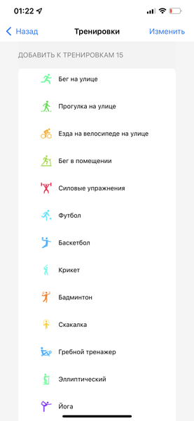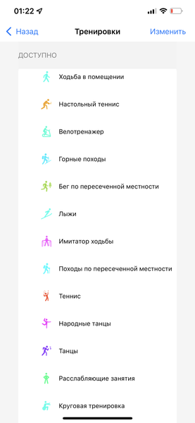 Также стоит сказать о тренировках. Здесь довольно широкий их выбор, причем по умолчанию доступны далеко не все, но нужные вам вы легко можете активировать через смартфонное приложение.