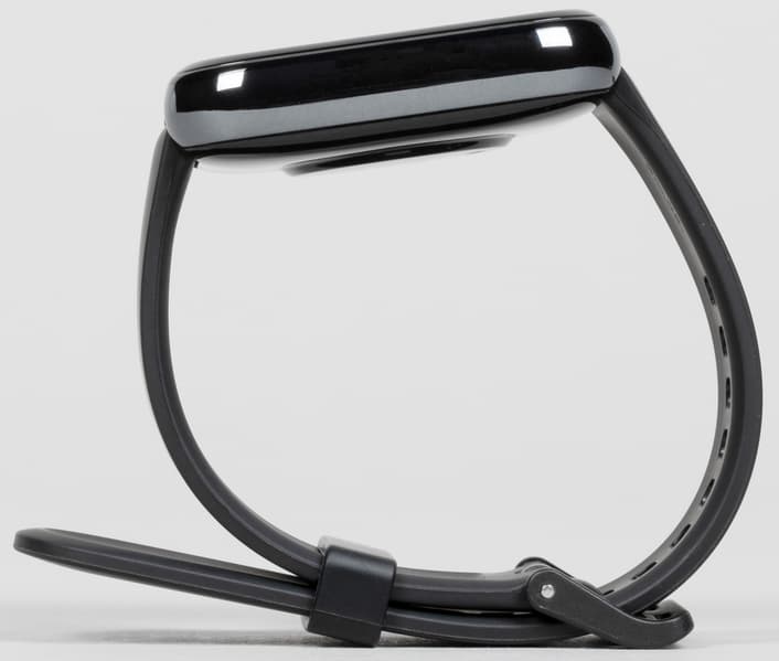 Главные особенности дизайна — достаточно крупный экран, фронтальное стекло со скруглением и округлые края. Размер дисплея действительно впечатляет. Он больше, чем у большинства протестированных нами моделей умных часов.