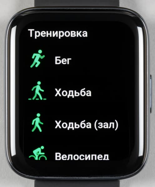 Набор возможностей, в целом, традиционен для подобного класса устройств и не сильно отличается от того, что мы видели у Realme Watch 2 Pro. Главное новшество — возможность принимать и совершать телефонные звонки на часах. На скриншоте ниже — полный список доступных приложений.