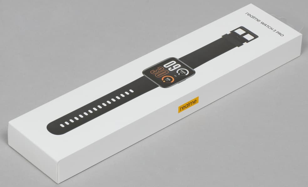 Часы поставляются в коробке весьма традиционного белого цвета (в противоположность ярко-желтому у Realme Watch 2 Pro и некоторых других моделей). Зачем производитель отказался от фирменного облика — вопрос риторический. Впрочем, признаем, пользователи выбирают часы, конечно, не по цвету коробки.