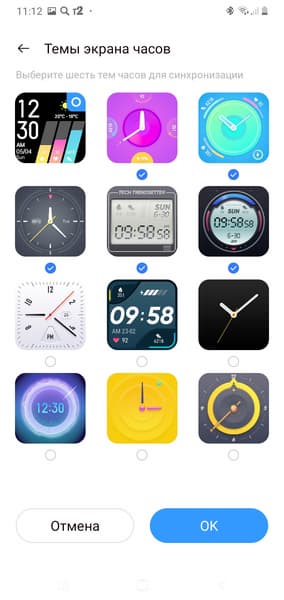 Теперь — о более привычных возможностях. В часах можно менять циферблаты. Выбор небольшой — только 12 вариантов, из них шесть по умолчанию есть в часах, и переключаться между ними можно свайпами по экрану после долгого нажатия. Нам больше всего понравился монохромный Tech Trendsetter, стилизованный под электронные наручные часы 1980-х. Этот стиль как раз прекрасно сочетается с простым дизайном самих Realme Watch.
