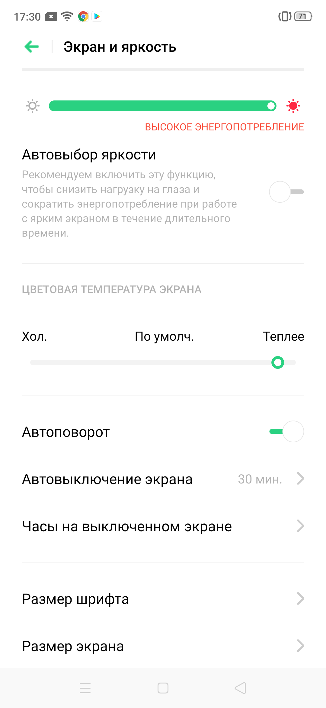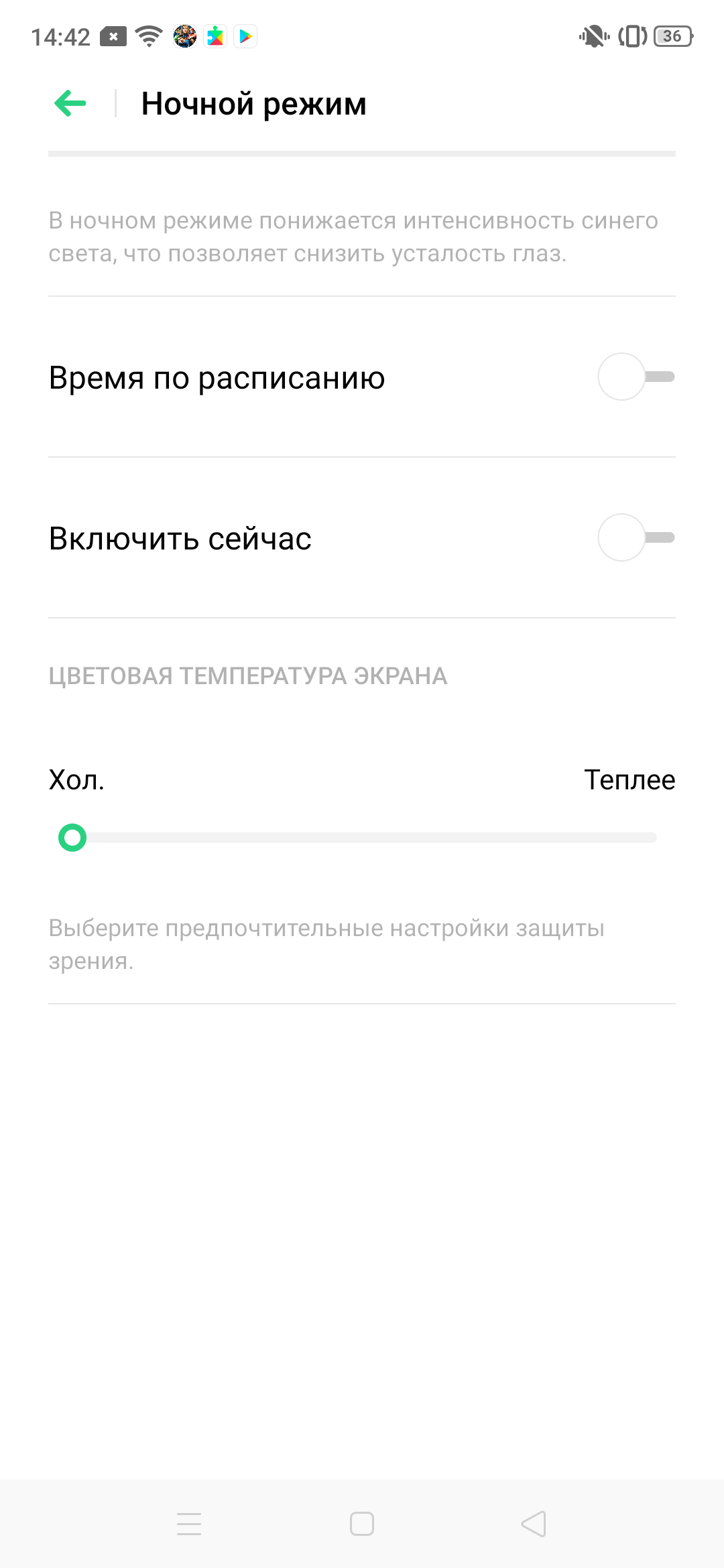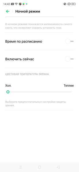 В этом устройстве есть возможность скорректировать цветовой баланс с помощью регулировки оттенка настройкой Цветовая температура экрана: