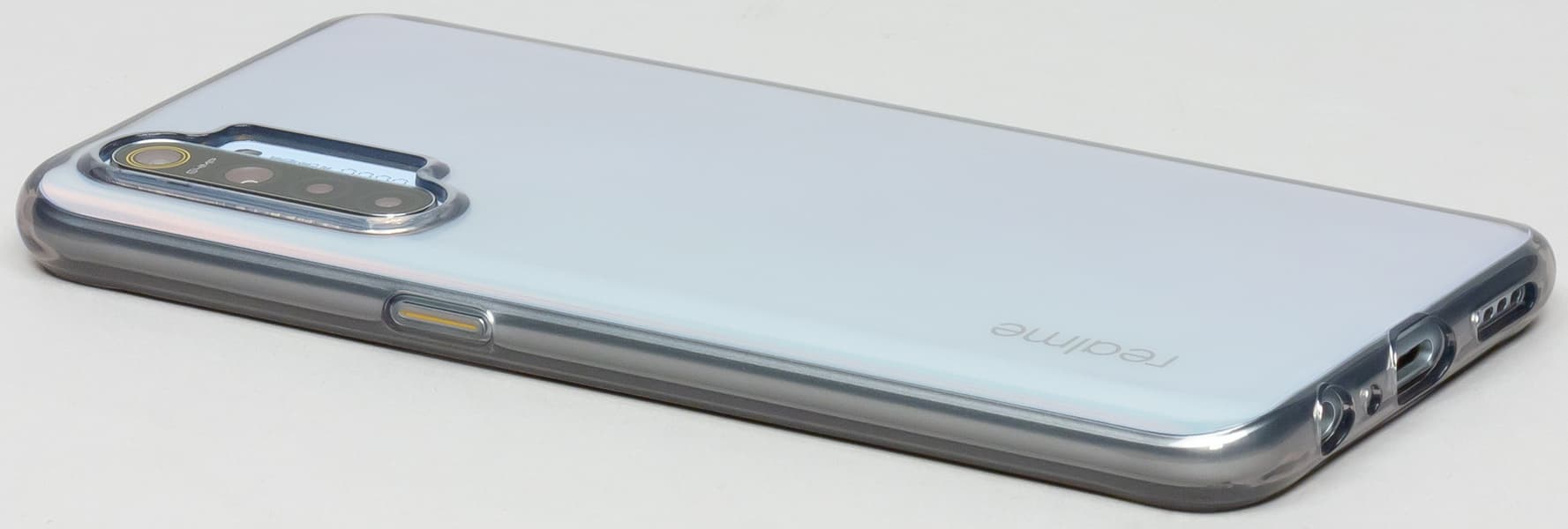 Конечно, в комплекте идет традиционный прозрачный чехол, в котором, надо признать, смартфон смотрится не менее привлекательно, что бывает крайне редко. Чехол довольно толстый, гибкий, и хорошо защищает корпус, но все равно Realme XT приятнее держать в руках без чехла.